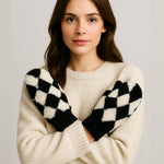Two Tone Diamond Pattern Sherpa Warm Mittens Winter Gloves 100% Polyester One Size Made in China