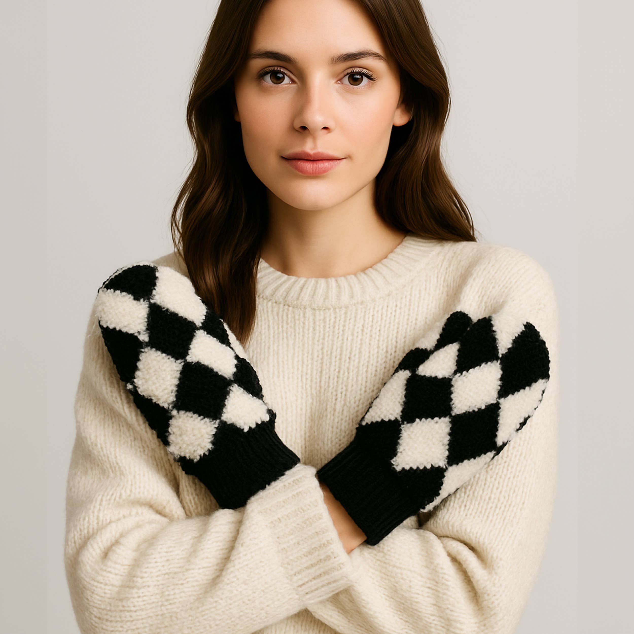 Diamond Pattern Sherpa Warm Mittens Winter Gloves