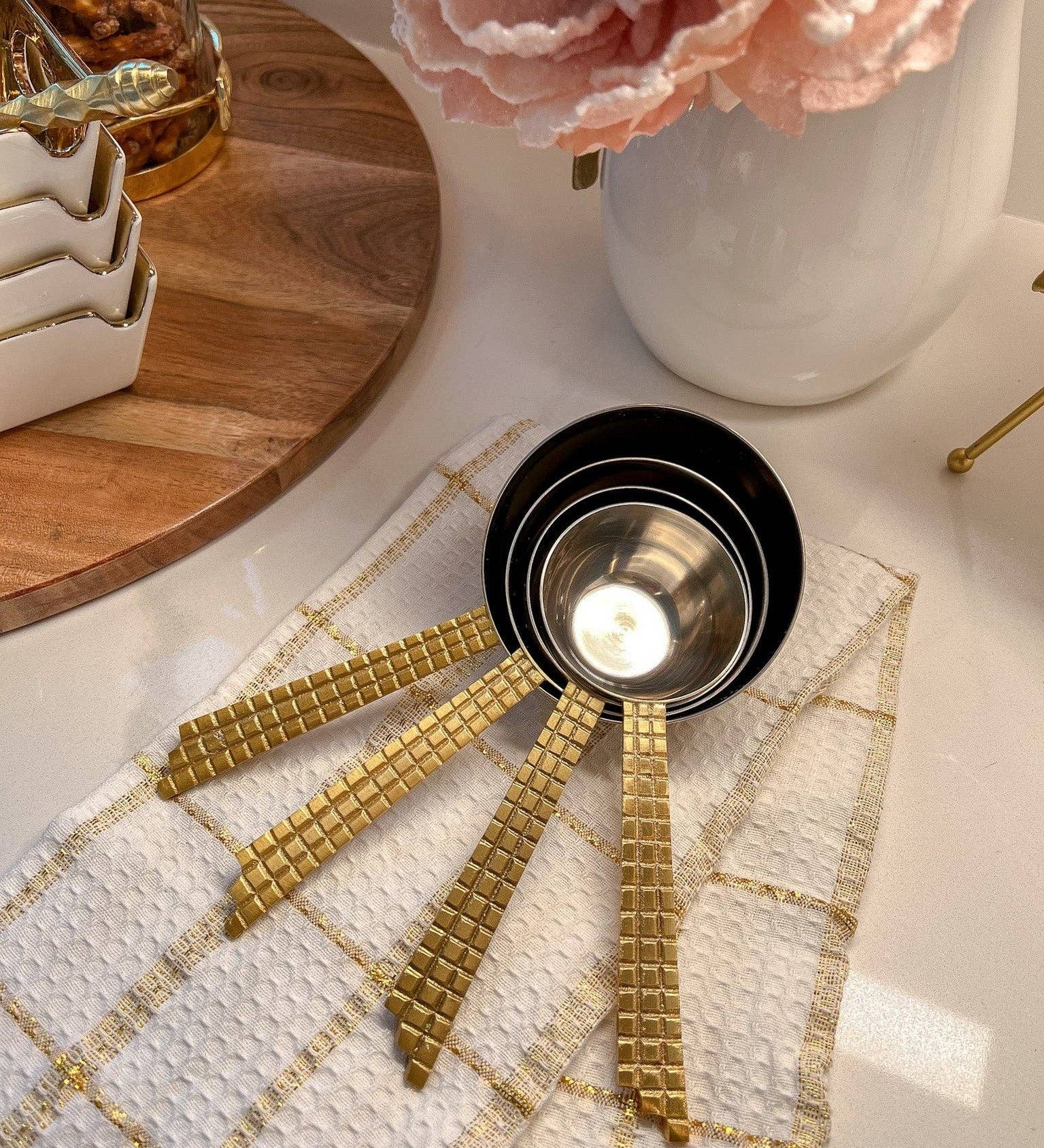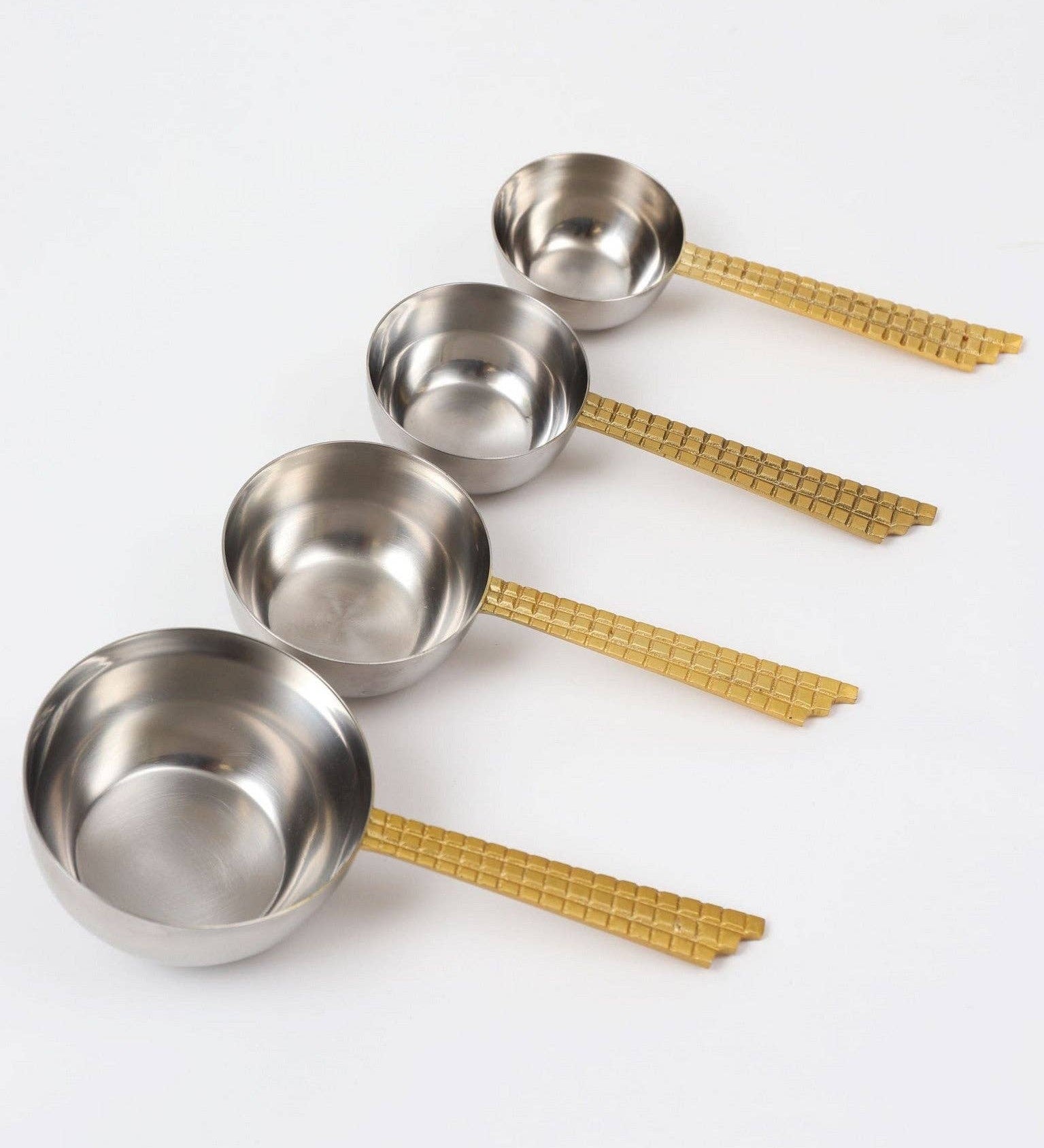 S/4 Measuring Spoons with Mosaic Design Gold Handle