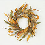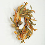 16-inch diameter (6.5inch center) Wreath of orange and green mixed herb leaves and heathers, a lively beautiful wreath for Fall Harvest season, can be used as a wall wreath and a table center piece, or a candle ring, Fall Floral, Thanksgiving Decorations, Farmhouse Decorations