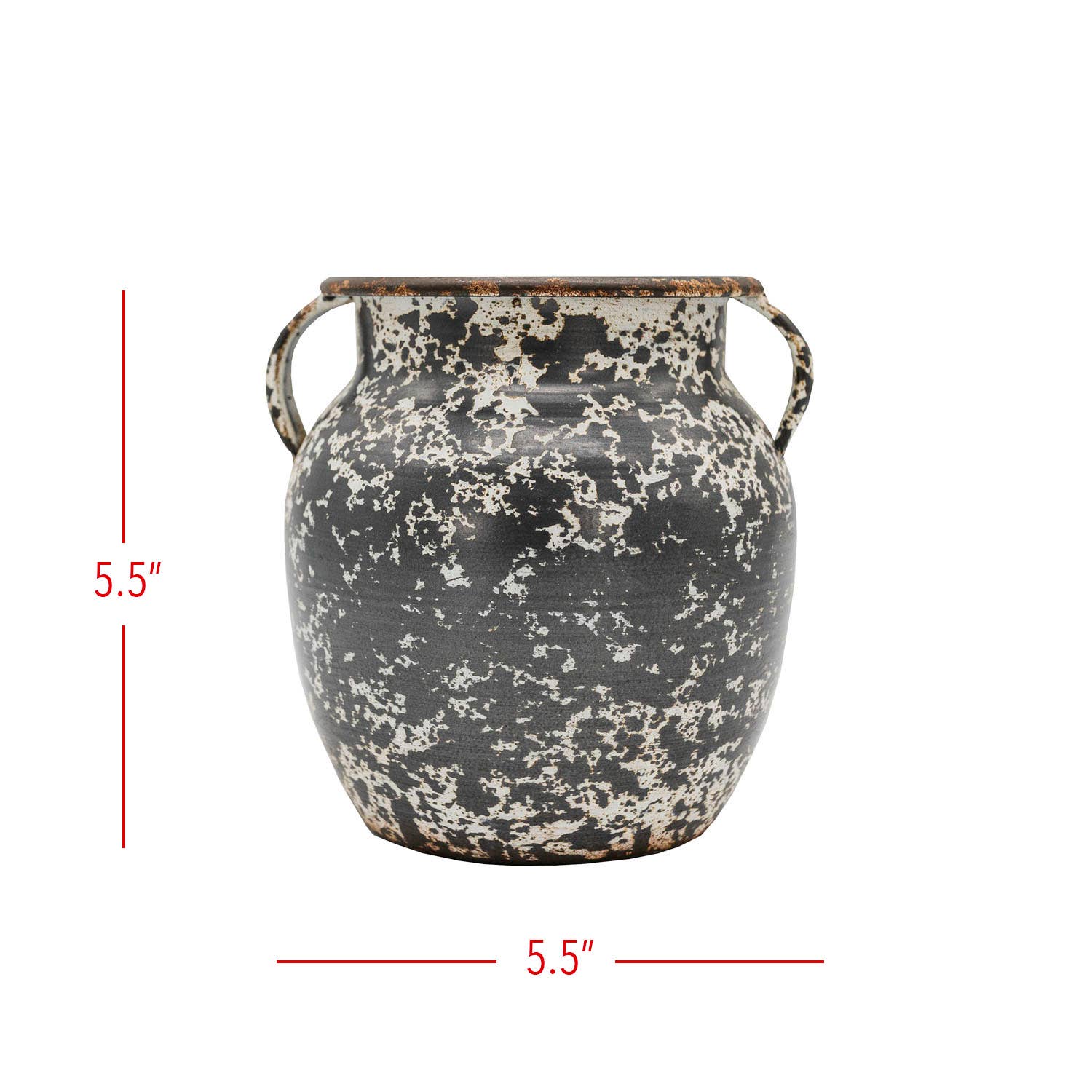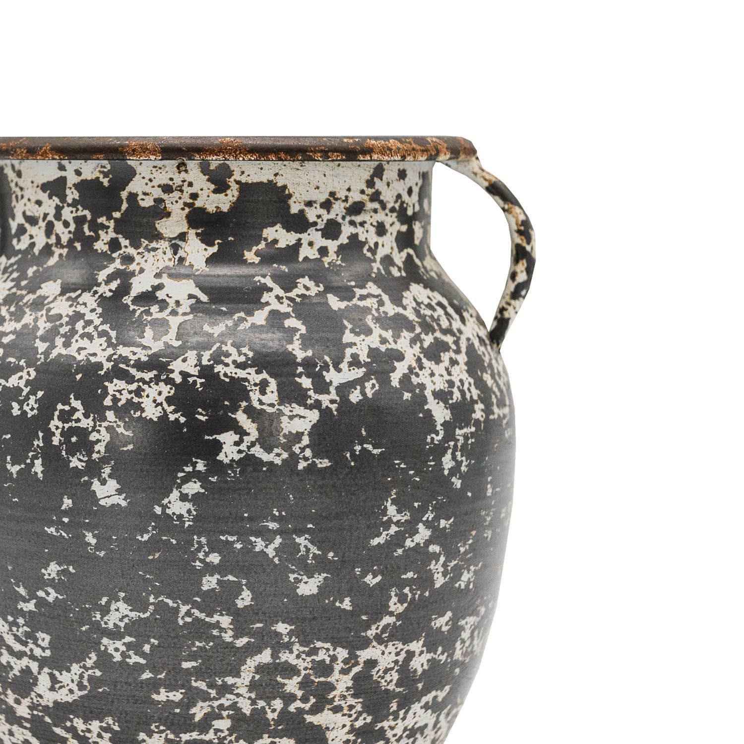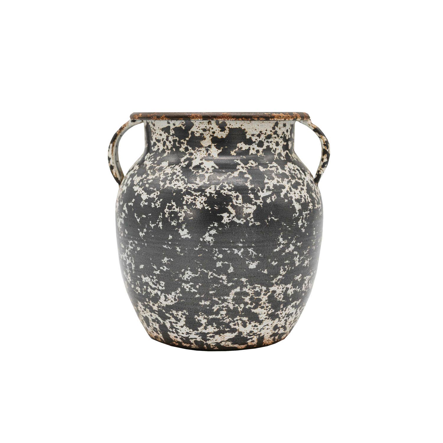 The Hudson Urn Vase makes a great shelf decorative accent or works well for dried florals. An antiqued gray and whitewash finish adds a vintage touch to this metal bud vase.