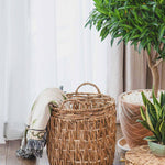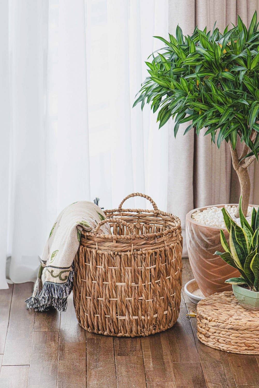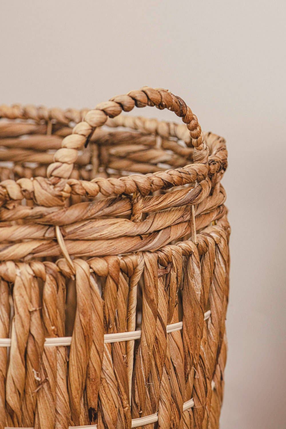 Introducing our Water Hyacinth Tall Wicker Basket- the perfect solution to add style and functionality to any room. These beautifully handcrafted baskets offer a versatile storage option while enhancing the aesthetics of your space. Each basket is handwoven from natural water hyacinth over a sturdy metal frame, ensuring a durable and long-lasting product. The intricate weaving technique provides a strong structure, allowing you to store a variety of items with ease. Use them to organize your living room, bedroom, bathroom, or even your office. Whether it's storing blankets, laundry, toys, towels, or other essentials, these baskets are designed to keep your space clutter-free and visually appealing. Dimensions: (Diameter x Height) Large Basket 17.7 in x 19.7 in (45 x 50 cm) Small Basket 14.6 x 16.6 in (37 x 42 cm)