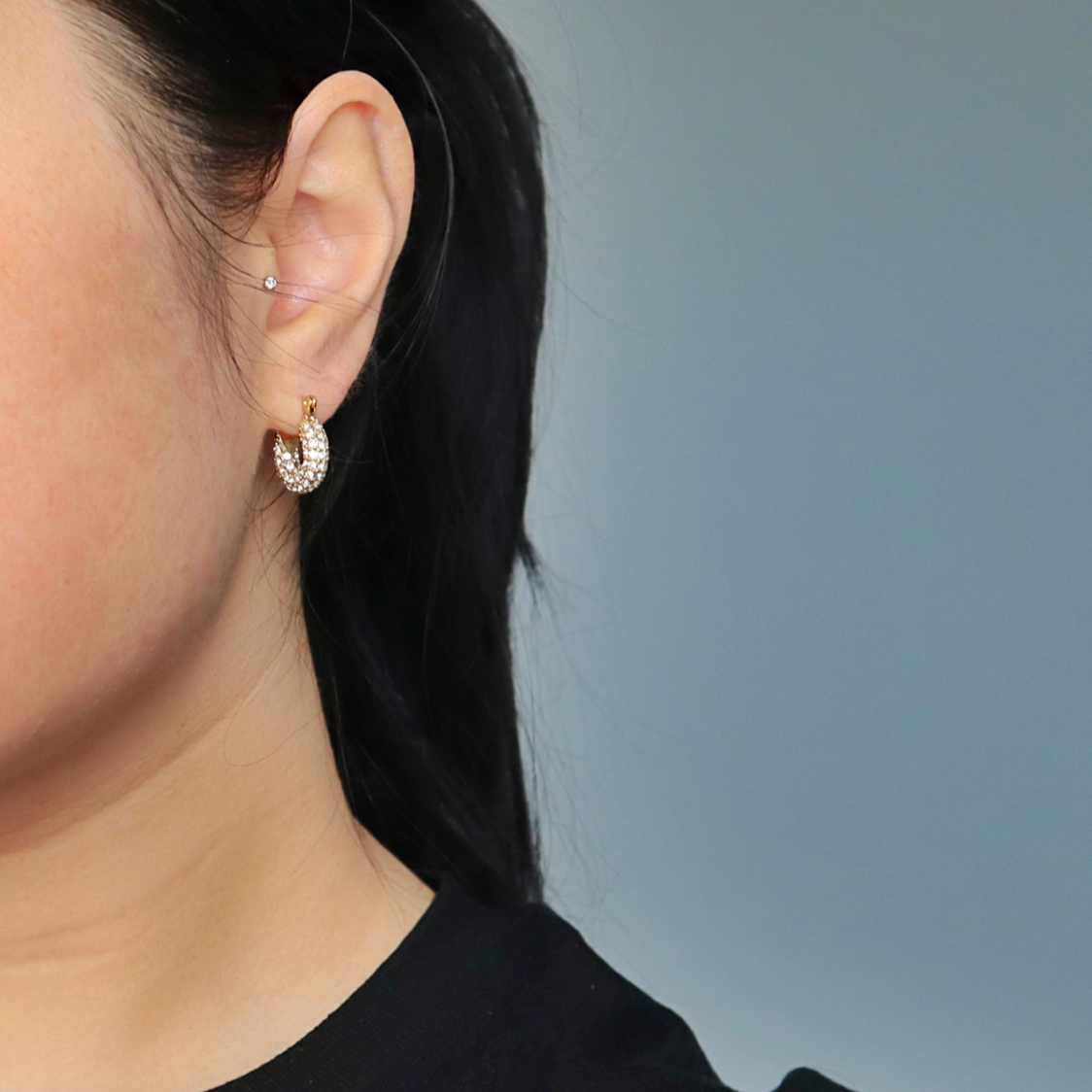 Add a touch of glam to your look with our Aria Pave Hoops. These chunky hoops are the perfect blend of classy and trendy. With dazzling pave detailing, you'll always be red-carpet ready. -stainless steel, gold plated