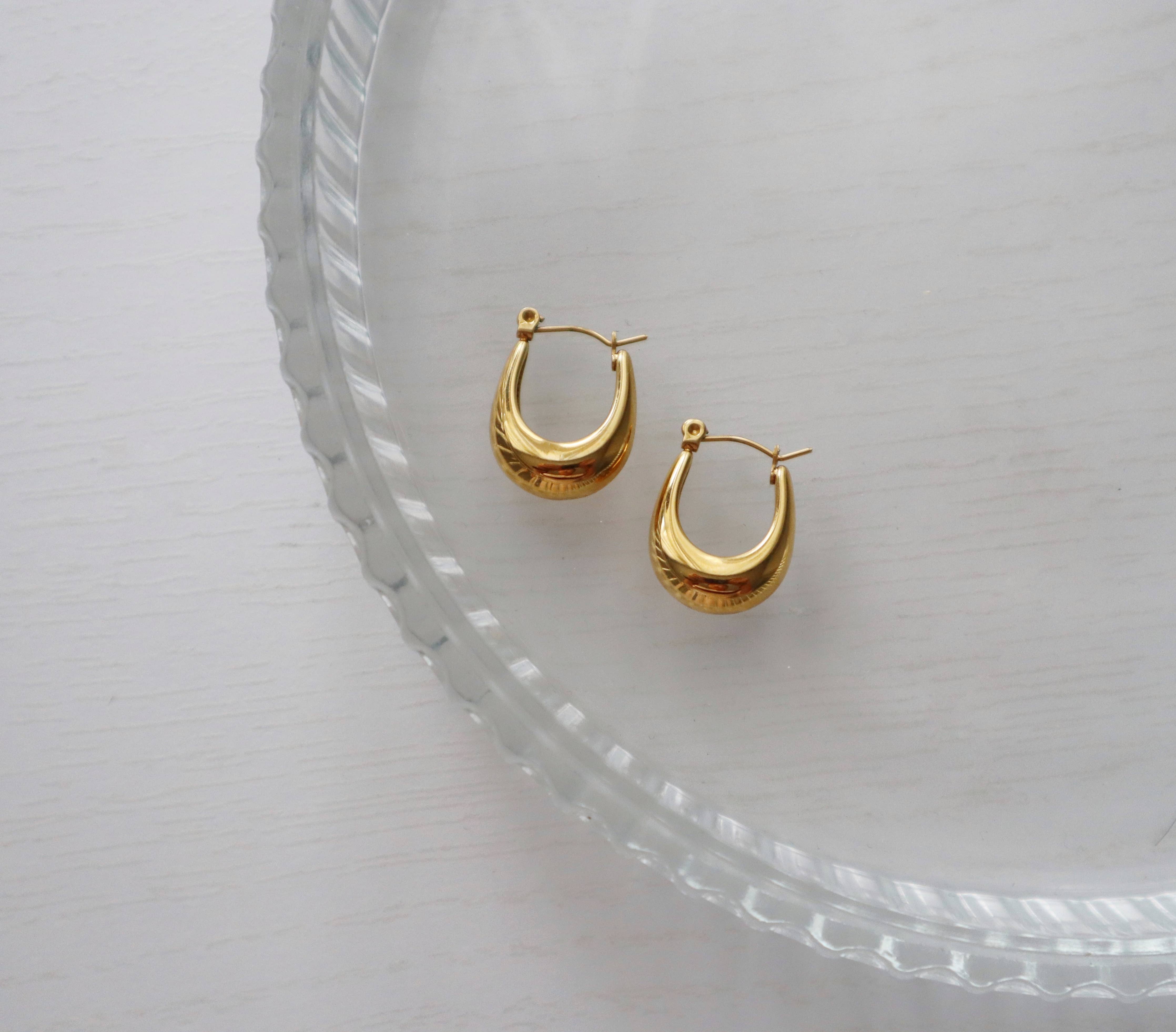 Perfect chunky hoops for an effortless on the go look. Lightweight so it's perfect for on the go, you won't be able to tell you're wearing them! Tapered at the top and wider at the bottom. -stainless steel, gold plated