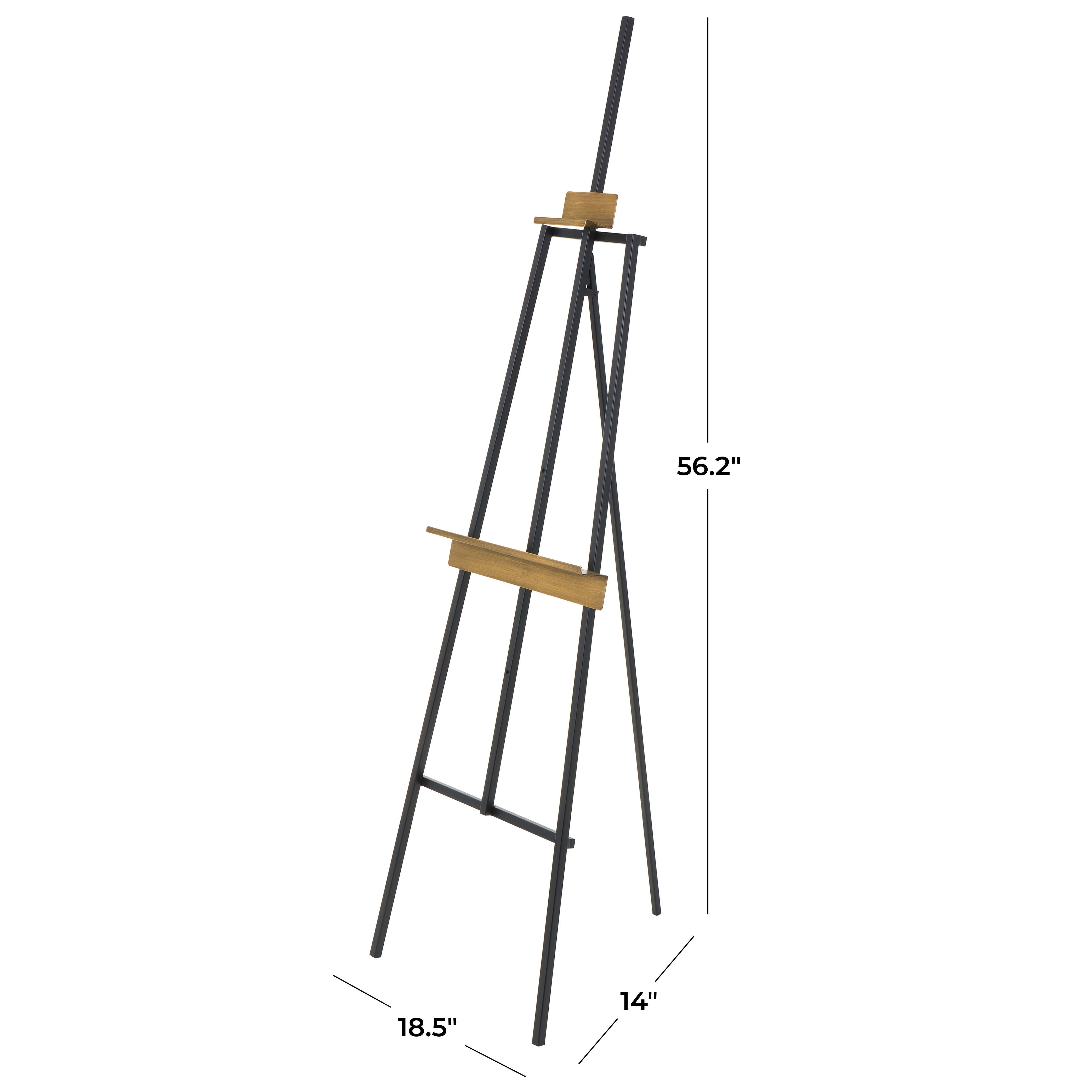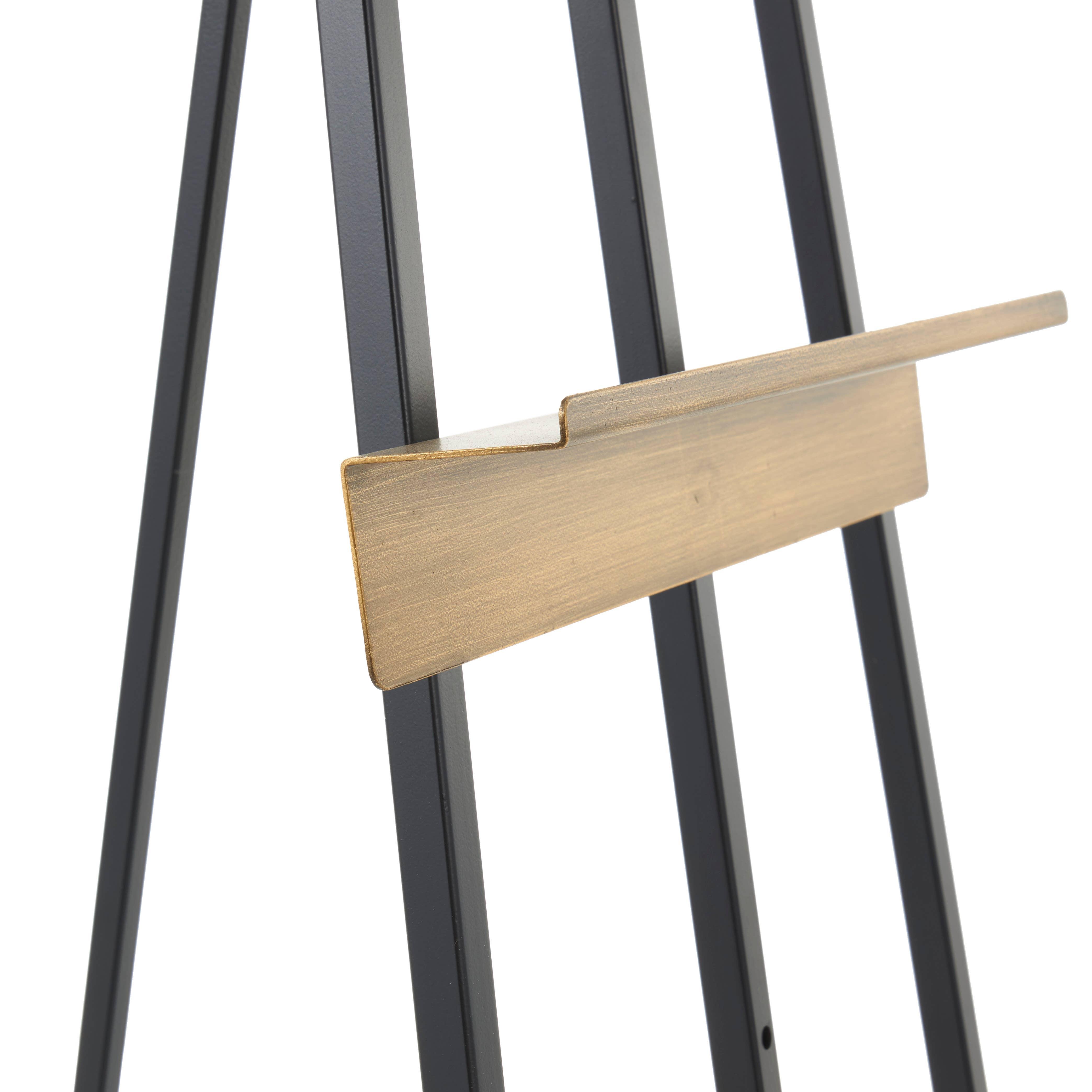 Metal floor easel can be used as versatile tool for artists and a striking display for artwork in any space. This is a single black colored iron floor standing easel. Industrial style.