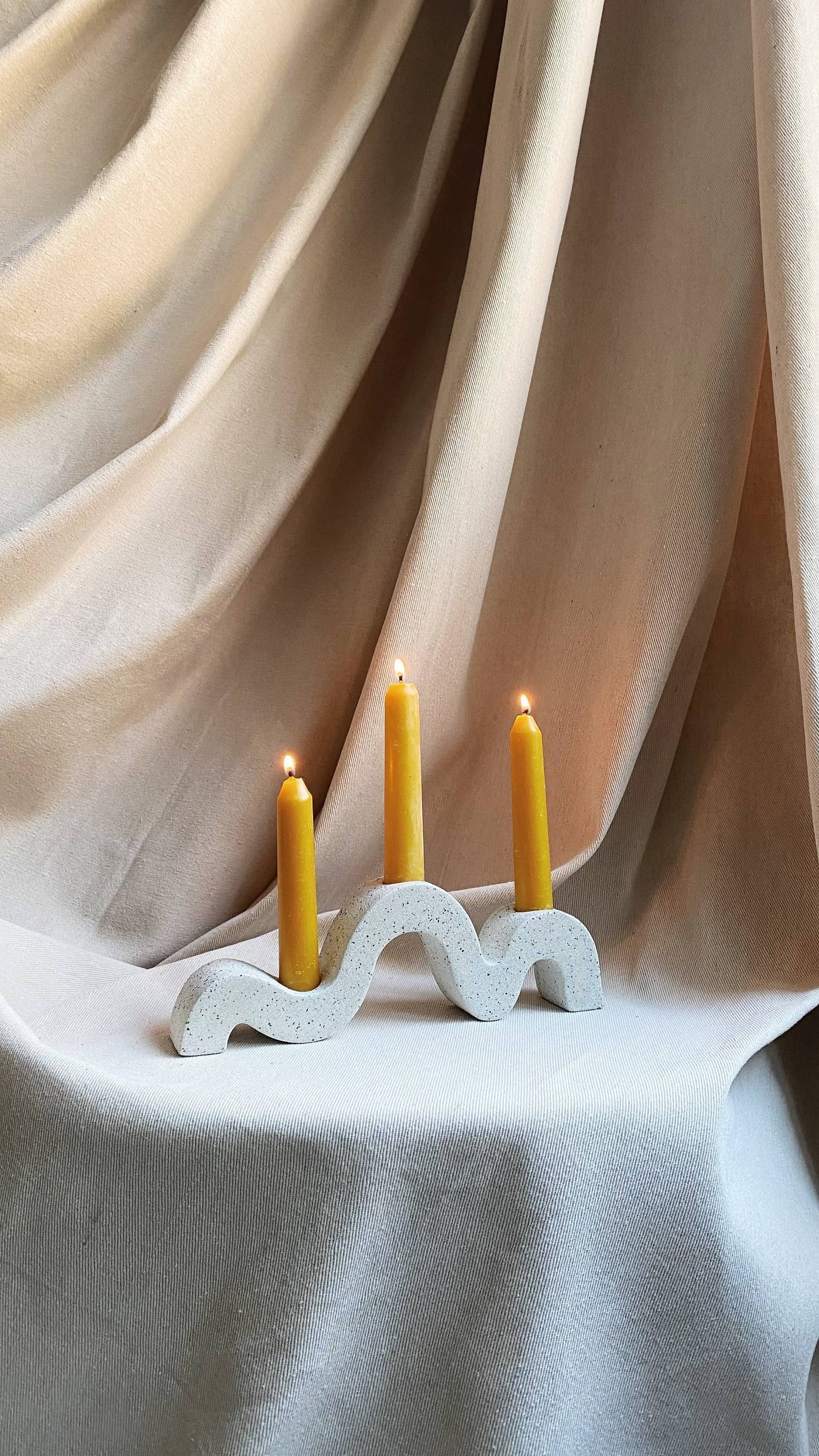 Concrete candle holder unda | decorative concrete object | concrete wave | concrete candlestick holder | concrete decor | mid-century | props