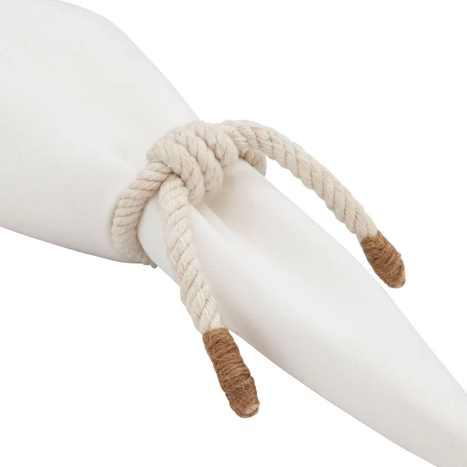 Highly versatile, the Knotted Rope Napkin Rings can bring a classic look to your tabletop or a contemporary style, depending on the occasion. The twist rope design and the central knot offer great dimension and texture to every place setting. The solid, classy cotton brings style and sophistication to your tablescapes, a lovely accent for the table. The set can be easily dressed up or pared down and paired with a wide range of tableware and napkins.