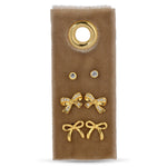 Love options? Our Bow Velvet Stud Set checks all the boxes! Gift it for yourself or to someone who loves a bow-tiful set of earrings. Set/3 Earrings 1" x 2.5" Velvet Tag 18k Gold Plated Brass Base Cubic Zirconia