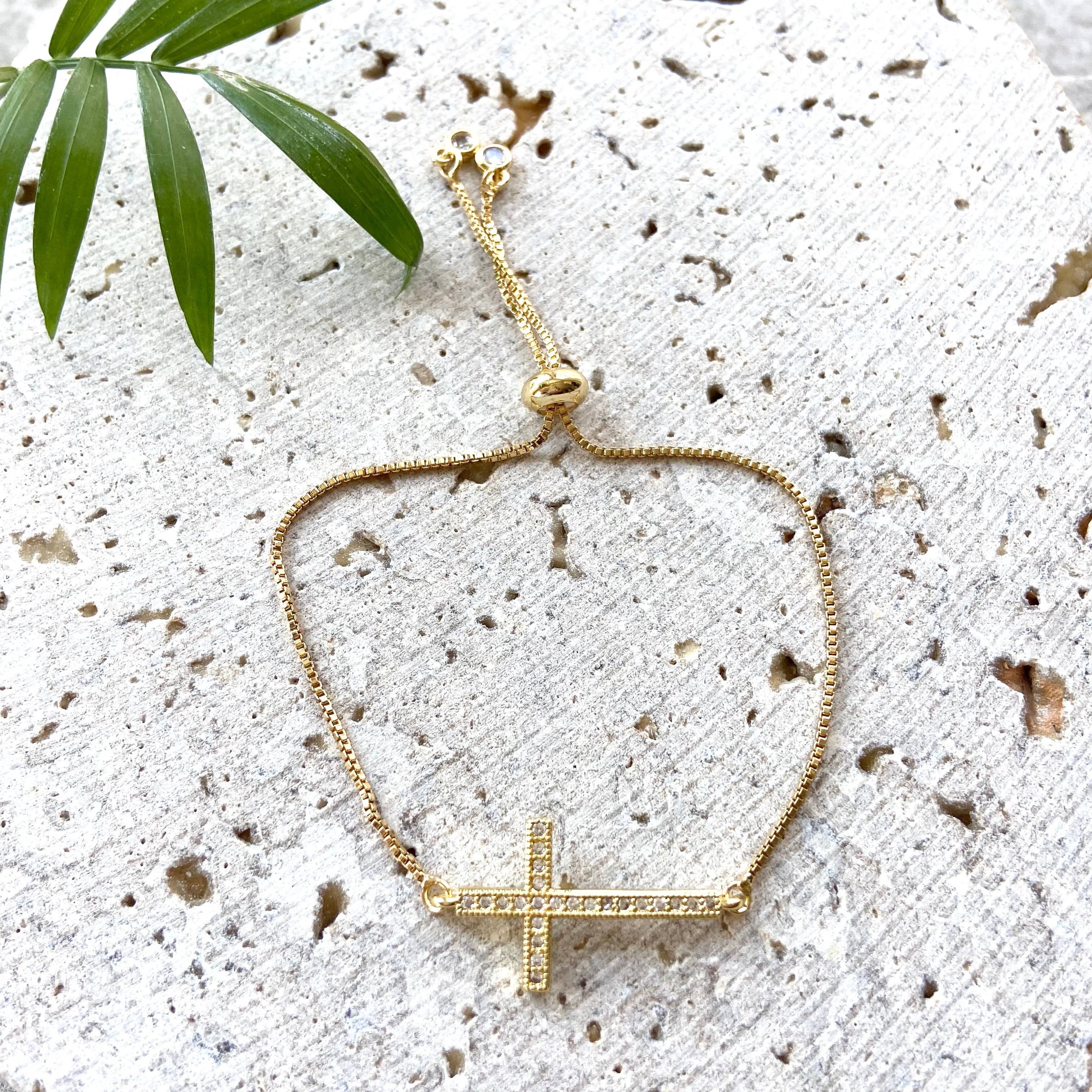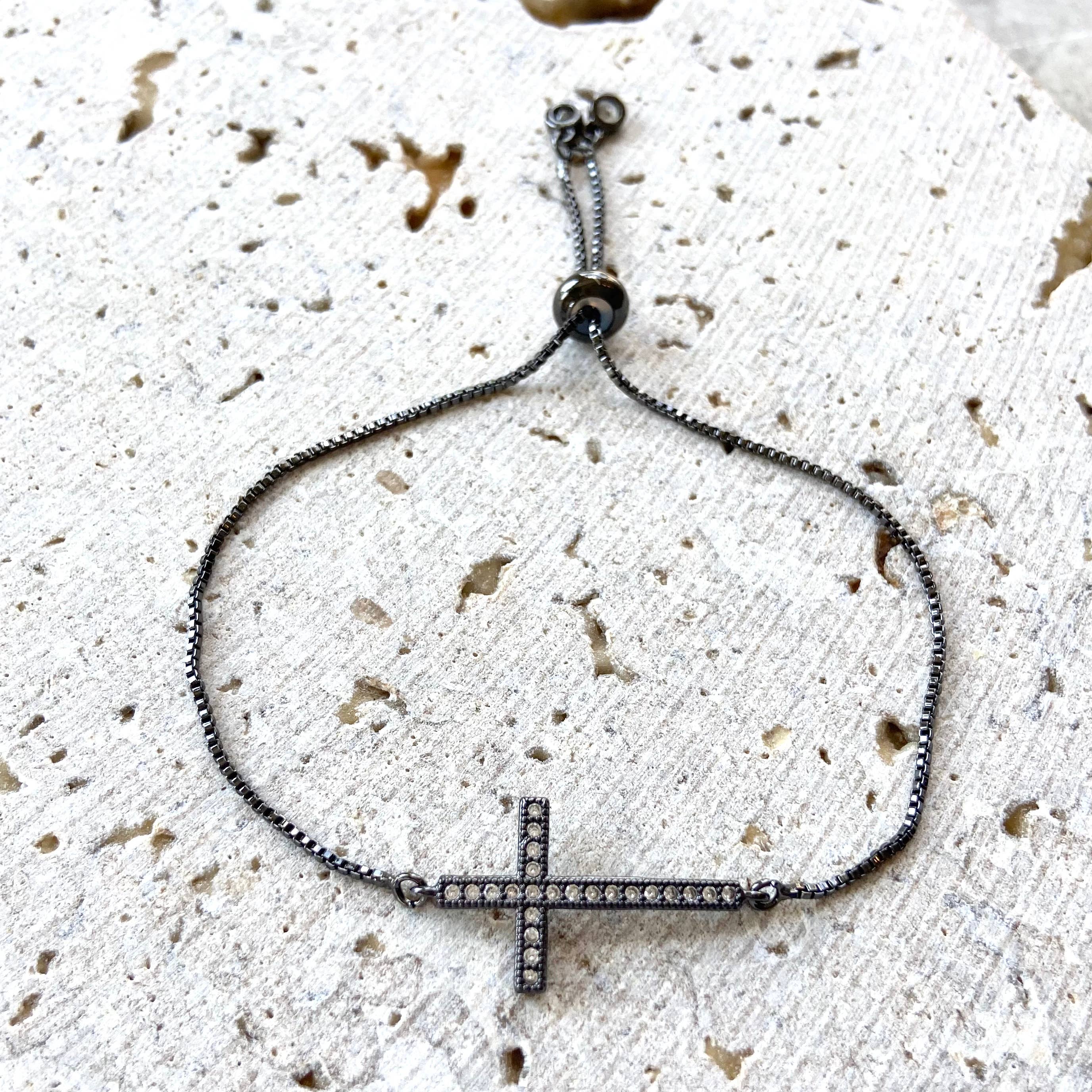 Adjustable slider cross bracelets one size fits all! Micro pave crystals. Choose your color.