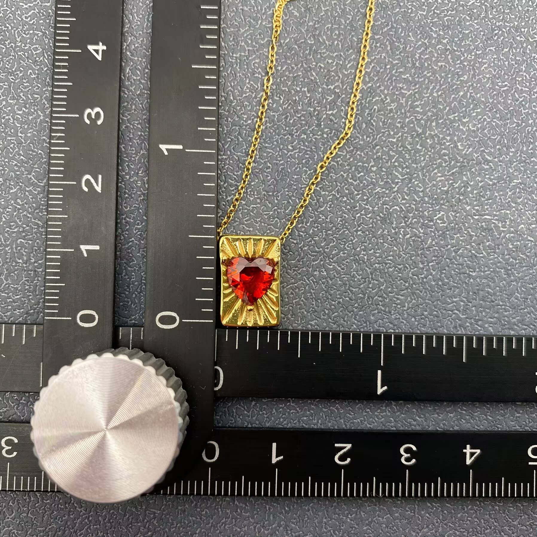 Sparkling Heart Zircon Charm 18K Gold Plated SS Necklace-FGS
