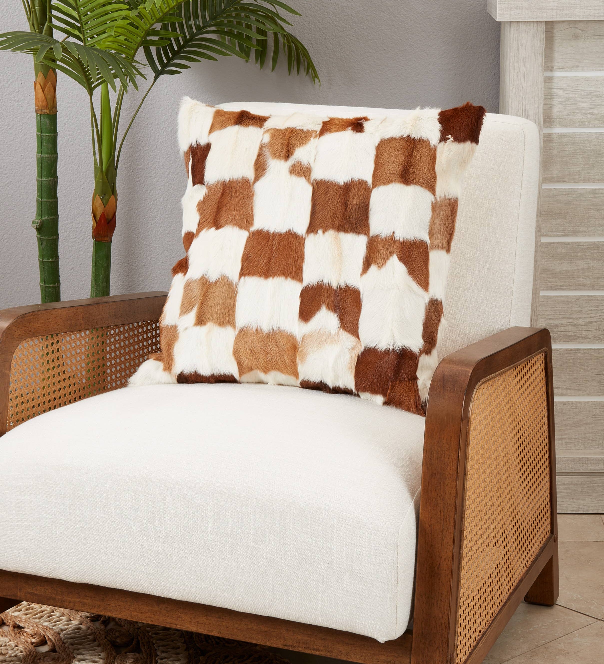 Patchwork Goat Fur Pillow - Poly Filled