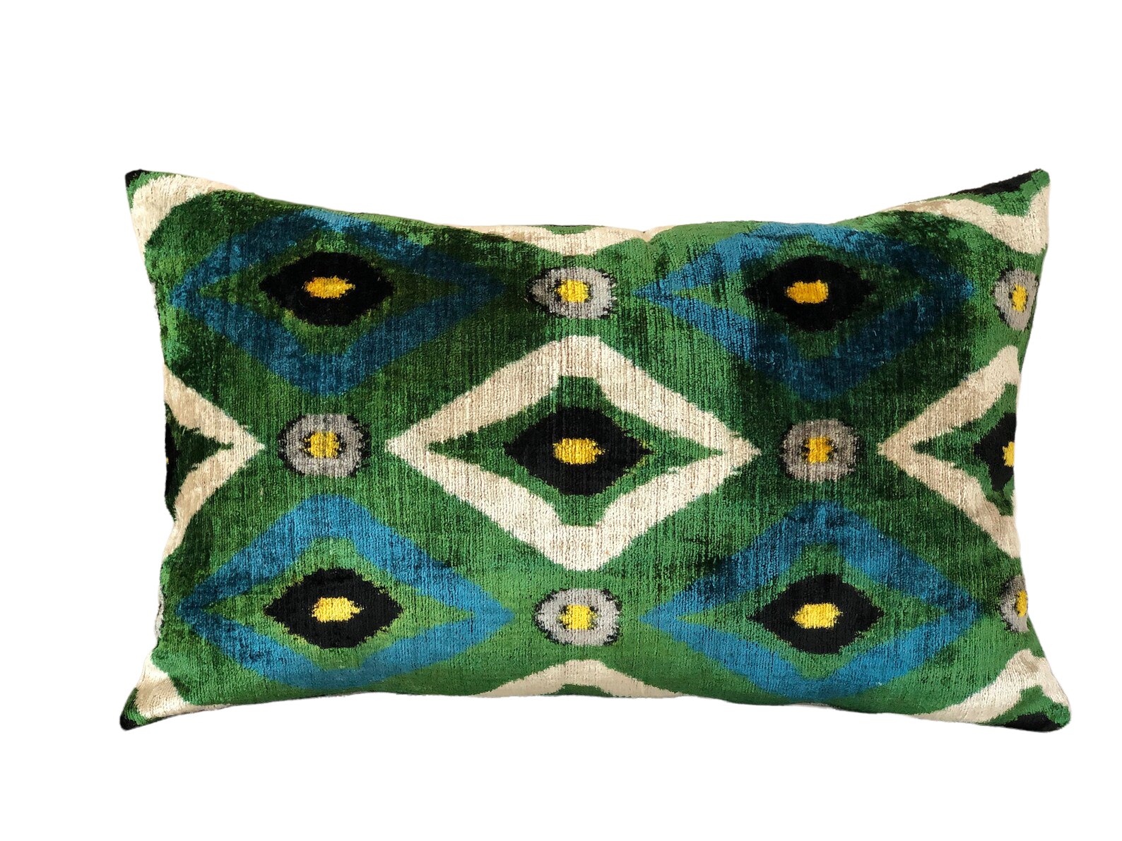 16"x24" Silk Velvet Ikat pillow - Silk ikat fabric exterior - Cotton lined backing - Zipper closure