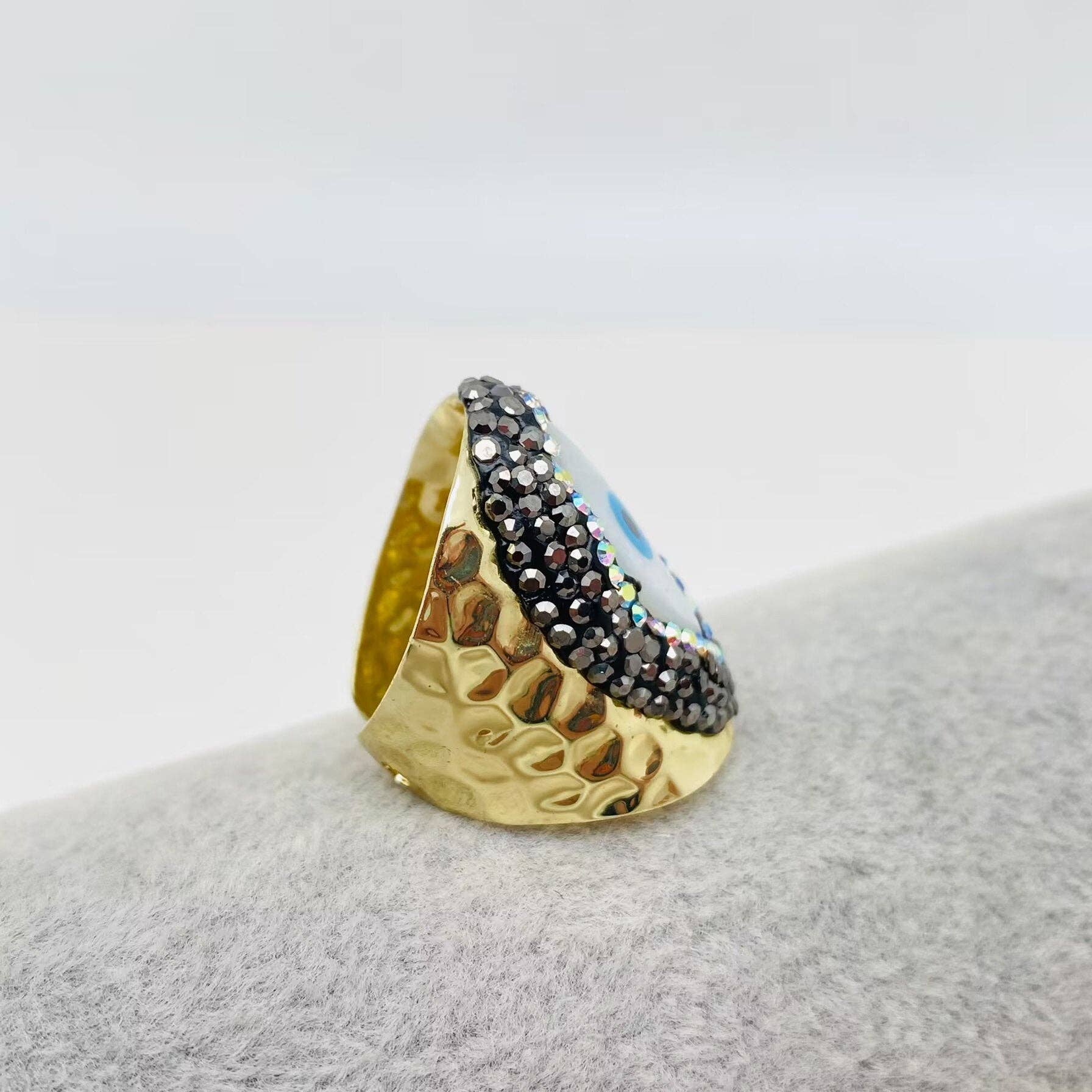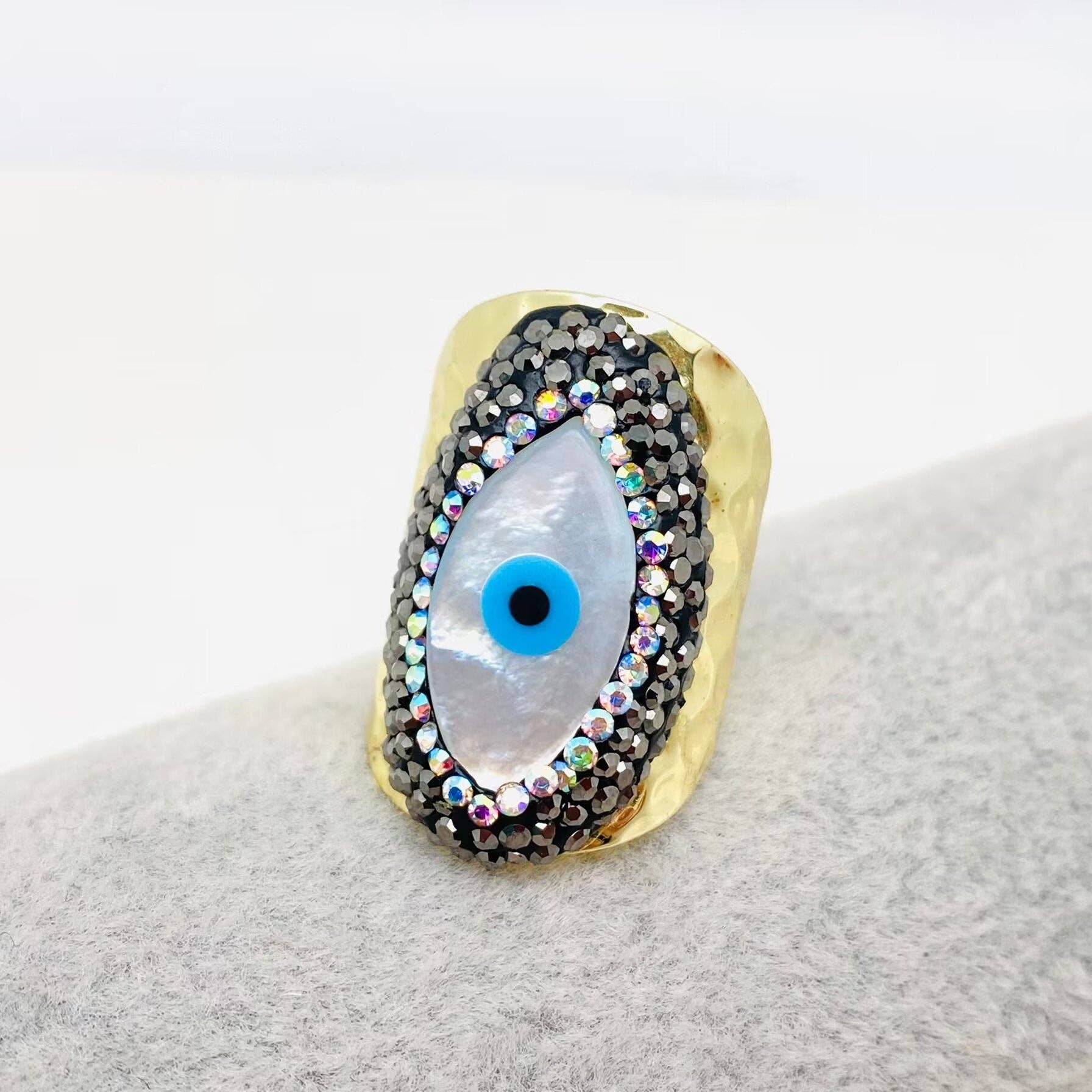 Turkish Evil Eye Inlaid Rhinestone Shell Ring