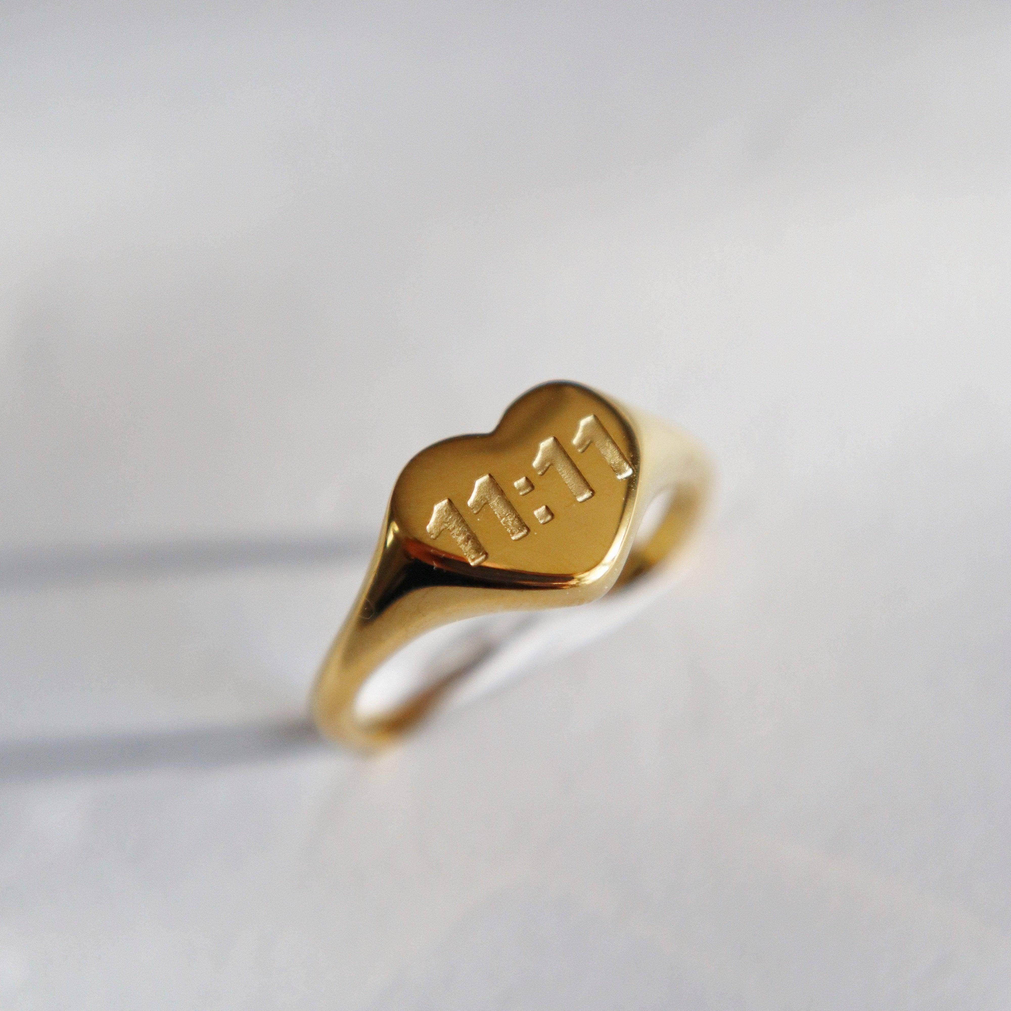 Featuring a heart-shaped design, the ring is adorned with the meaningful 11:11 inscription—a symbol often associated with wishes, alignment, and positive transformations. The 11:11 Heart Ring is a beautiful reminder that magic and love are always within reach. Make a wish and let this ring be your guide to aligning with your highest self and embracing the journey ahead. -stainless steel, gold plated