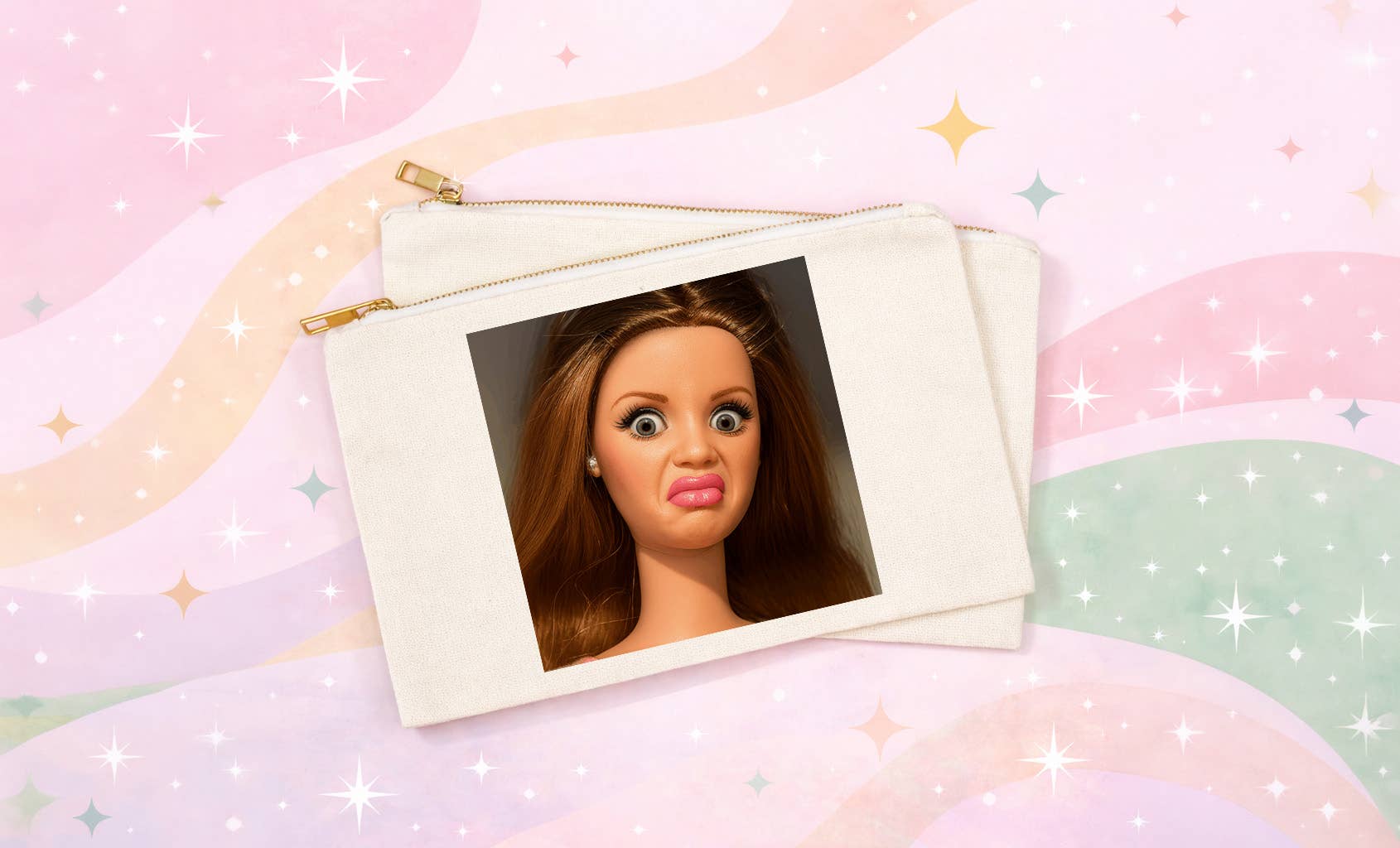 Messy Hair Doll Cosmetic Bag | Funny Makeup Bag, Funny meme
