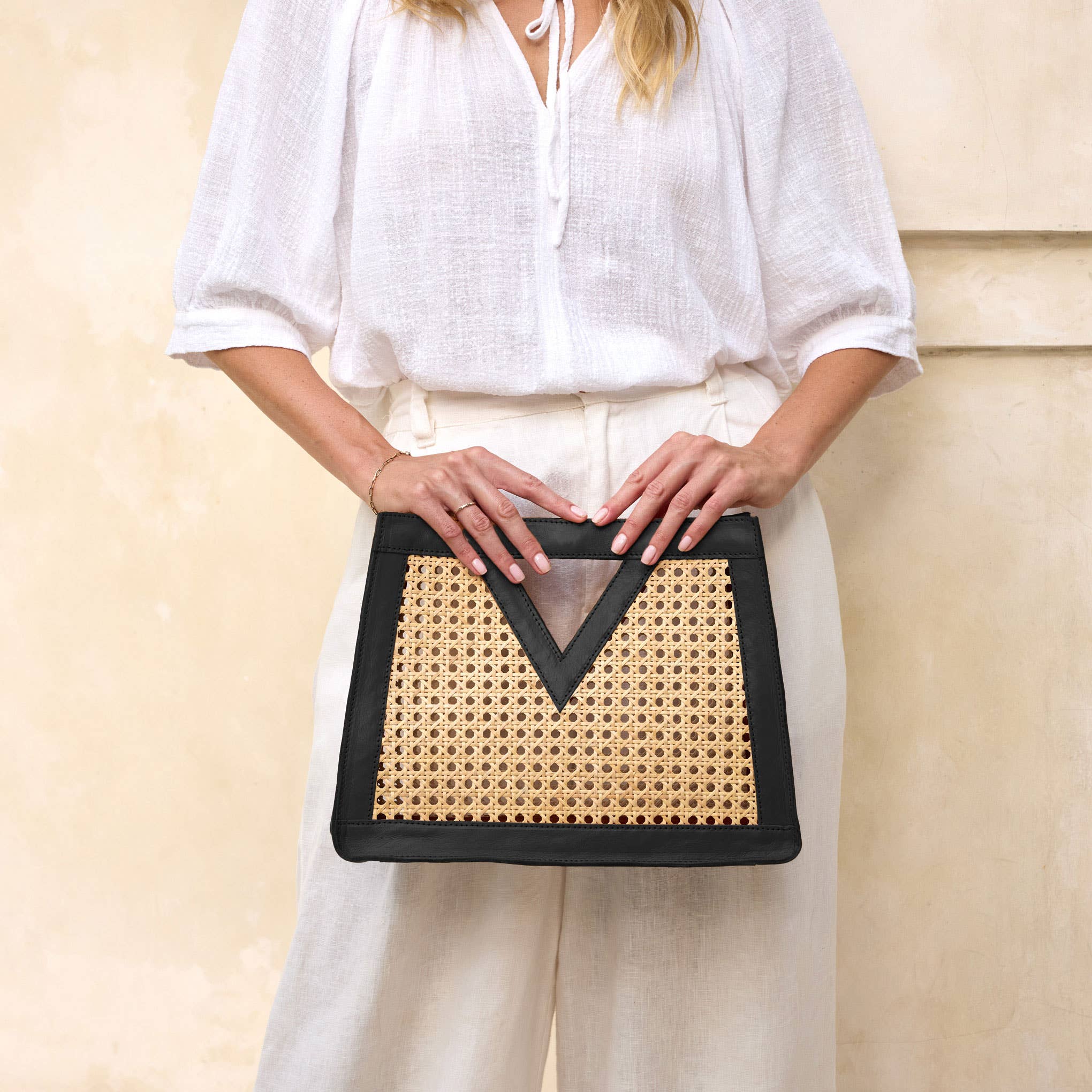 Cane Weave Triangle Rattan Handbag