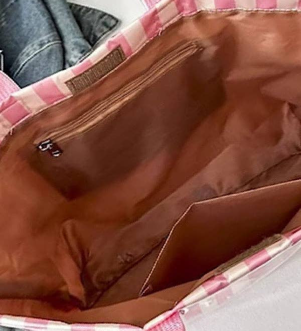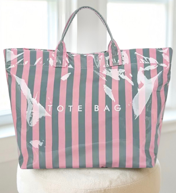 Pink and Gray Striped TOTE BAG