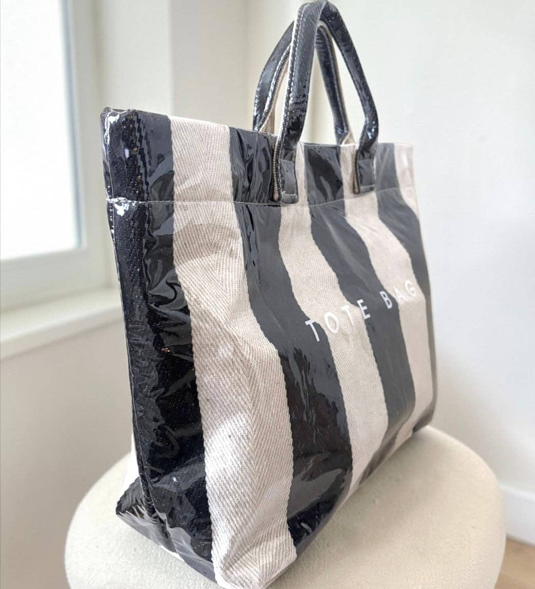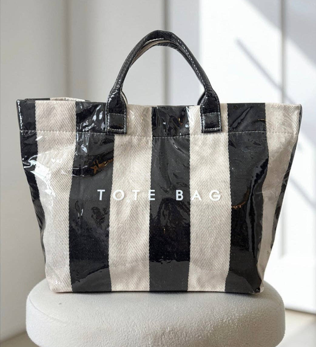 Black and Beige Striped TOTE BAG