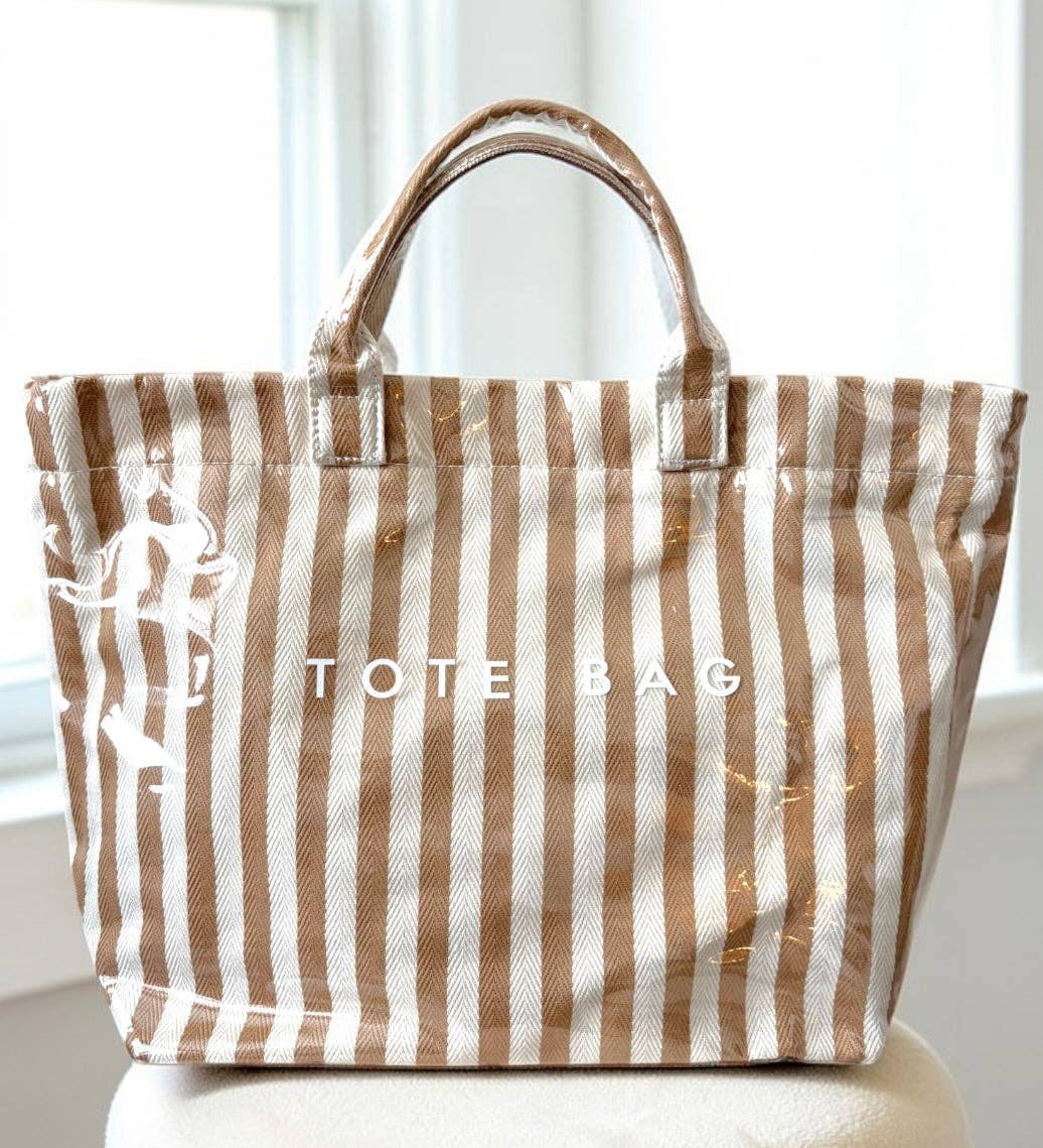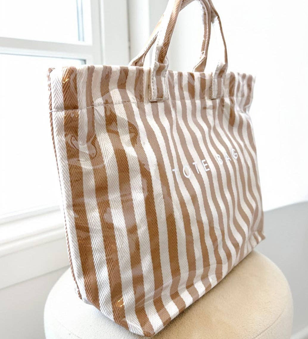 Tan and Beige Striped TOTE BAG