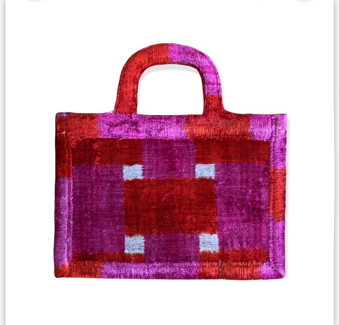 Silk Velvet Ikat Small Tote Bag - Hand-woven silk velvet ikat fabric exterior - Canvas interior - Designed to hold all daily essentials - 9"x 13"x 5" (depth)