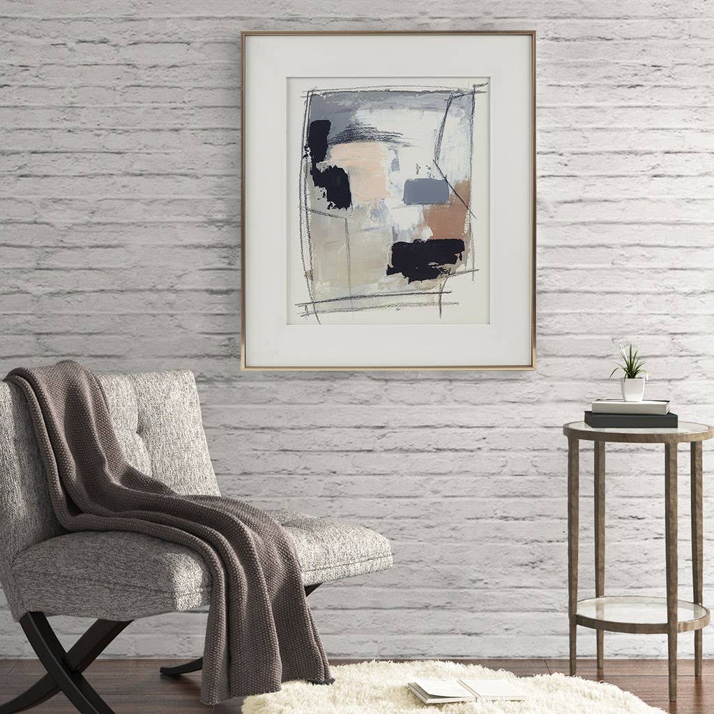 Beautifully displayed under glass, this 20.7x24.7" wall art features an abstract print in neutral colors with a double matte for a modern gallery aesthetic, while the gold frame adds an elegant and elevated update. Finished with 2 D-rings on the reverse for easy hanging, this wall art piece is the perfect addition for a touch of sophistication to any decor.