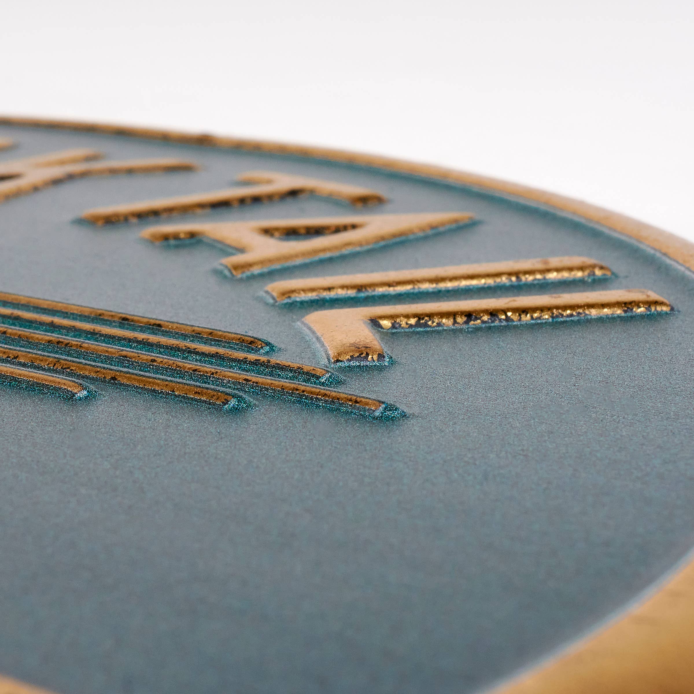 A metal wall décor piece from our Art Deco Collection displaying an art deco inspired design with a bar-themed sentiment that reads "Cocktail Lounge." Metal sign features embossed details and metallic gold accents. Our Cocktail Lounge metal wall décor is easy to hang against wall using the included mounting hardware and pre-drilled holes at the top and bottom. A vintage alcohol-themed home accent perfect for a home bar.