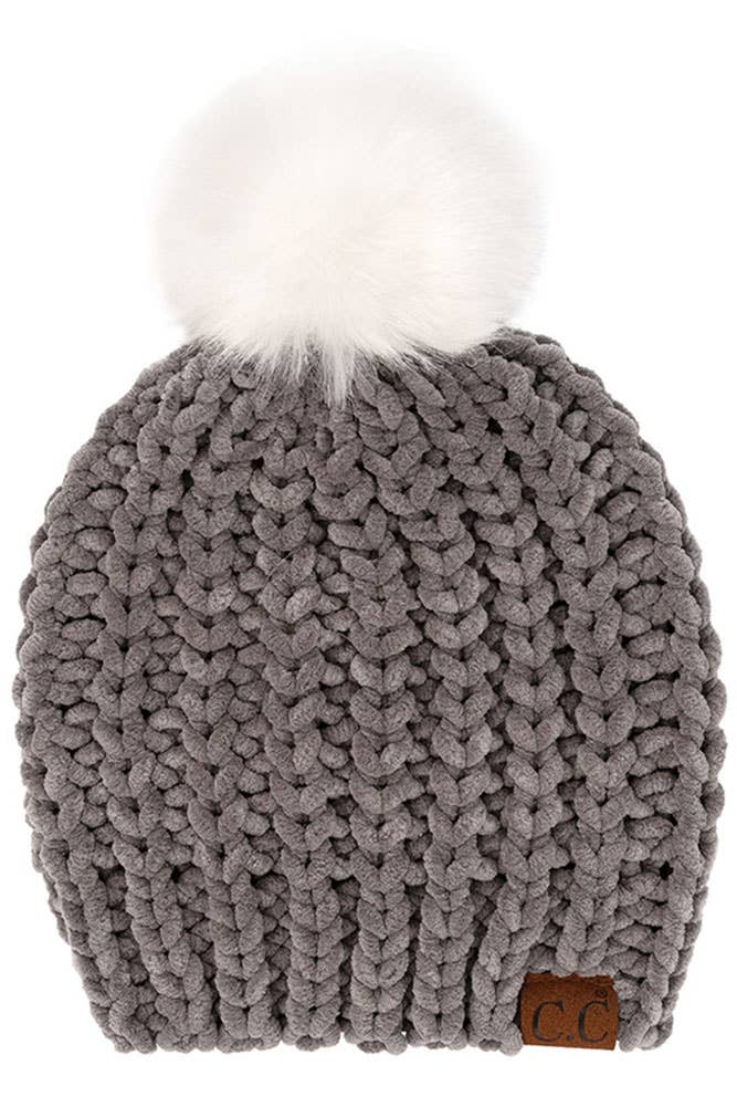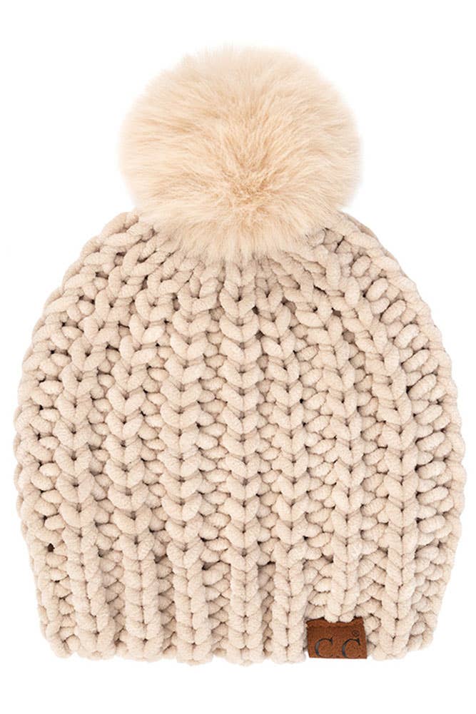 C.C Soft Chenille Chunky Yarn Beanie Hat with Faux Color Fur Winter Hat One size 100% acrylic Made in China