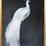 Whitepeacock2 Reverse by Christine Lindstrom is a Framed Print featuring a Gold frame and overall dimensions of 8x10. This piece is expertly printed using archival ink on board and skillfully hand assembled with a pine wood frame. Hanging hardware is included for easy installation. Made in the USA.