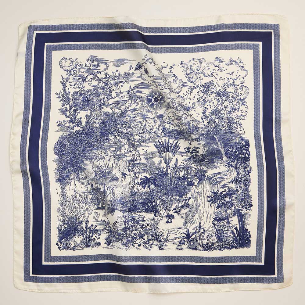 Scenic Toile Printed Square Silky Satin Scarf