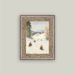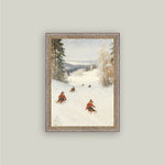 Sledding Hill Framed Antique Art